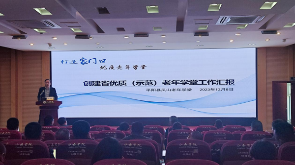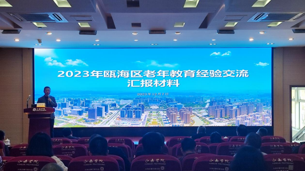 在工作经验研讨环节,永嘉社区学院滕益清副院长做《生态视角的家庭教育——永嘉县家长学分银行建设》主题汇报,介绍了永嘉在家庭教育生态建设上的做法和成效。泰顺城市学院陈大拱院长介绍了泰顺在未来社区教育场景建设中的实践和思考。鹿城区老年大学、瓯海区老年大学、瑞安市老年大学、苍南县老年大学、乐清市东塔老年大学、平阳县昆山镇凤山老年学堂分别就老年教育工作做了经验分享。