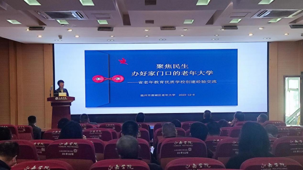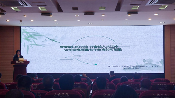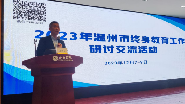 12月7日,温州市终身教育研讨研讨活动在浙江开放大学永嘉学院举行。本次活动由温州开放大学主办,永嘉学院承办。温州开放大学党委书记伍挺,校党委副书记、副校长胡剑波,温州城市大学相关部门、各县(市、区)社区学院院长及部分社区老年教育管理干部出席本次活动。