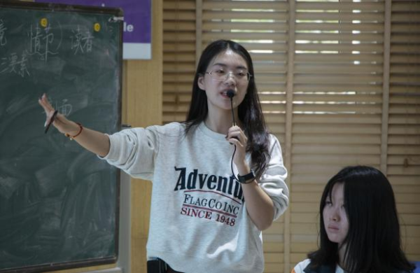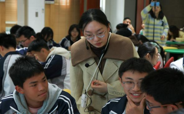 林黎老师执教的是《多角度把握人物形象——<林黛玉进贾府>人物形象赏析》。林老师顺利获得展示学生课前预习过程中提炼出的三个共性问题——“为什么林黛玉进贾府会‘步步留心,时时在意’?为什么王熙凤的衣饰如此华丽?为什么贾宝玉会‘摔玉’?”作为本堂课的教学重点。接着学生以小组形式分别讨论这三个问题,结合提示语,围绕课文中的相关语句,分析作者描写人物所用的手法及人物的性格特点。学生们持续讨论,踊跃发言,见解独到、内容丰富,教师根据回答,将结果进行板书,并带领学生一起品读文中的经典语句。之后学生对分析小说人物形象的描写手法进行总结,同时也理解了作者对不同人物选取描写手法是有侧重的。最后,以多角度理性评价小说人物,撰写和分享人物短评来结束课堂。