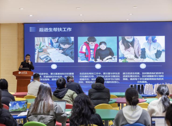 “生活有望穿秋水的期待,也会有意想不到的欣喜。”韦恒院长以温暖的言语诉说着研究中心是一个有趣的团队,我们在做一件有意义的事情。当我们觉得工作是一种乐趣时,生活便会成为一种享受,意想不到的欣喜自会悄然而至。韦院长坚信每位教师的潜力都是无限的,鼓励大家不断提升自身教学能力,每一分提升会如同耀眼的钻石焕发出璀璨的光芒。他还希望我校升学部能实现“普职融通”的新型办学模式,即实行普高与职高互派师资和学籍互转,实现资源共享,着力提升学生的学习能力、实践能力和创新能力。
