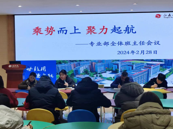 乘势而上,不以日月为限;聚力启航,不以山海为远。为进一步加强班主任队伍建设,强化班级常规管理,实行新学期德育工作,2月28日下午,永嘉二职专业部召开了新学期全体班主任会议。会议由专业部主任周芳主持,副校长谢丽莉和全体专业部班主任参加。