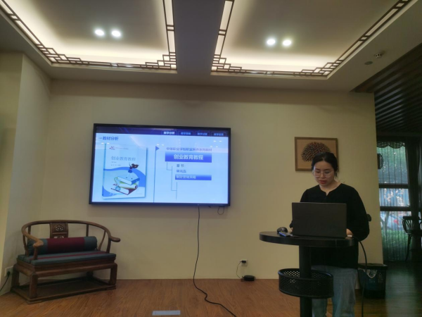 国赛典型案例展示者章妮老师做示范展示。她以创业教育课程《找准客户需求》为题说课,展示了参赛作品,并结合比赛经验分享了说课环节中的注意事项。最后,戴建法作点评与活动总结。他指出,该国赛作品之所以成为典型案例是有据可依的,特别其主题突出、思路清晰、特色鲜明等优秀之处是值得借鉴的。同时,他点明了教学设计的相关规范问题,供参赛选手参考。本次研讨指导活动内容丰富、形式多样、成效显著,为提升我校教育质量奠定了坚实基础,也进一步激发了教师们对信息化教学改革的热情与信心。