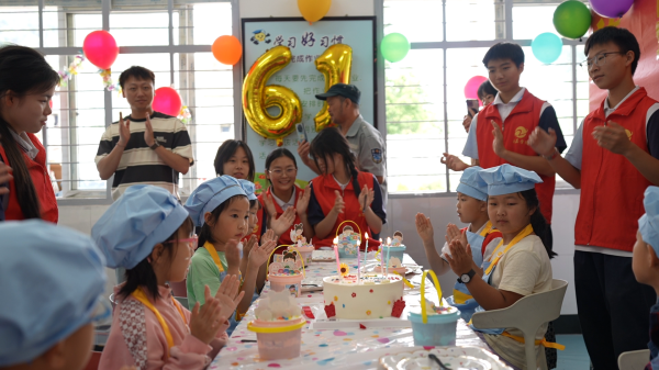 DIY蛋糕制作环节是整个六一儿童节活动中最引人注目的一环。在这个环节中,学生志愿者们与小朋友们一起探索烘焙的乐趣,共同制作美味蛋糕。志愿者们一对一带领小朋友围坐在制作台前,他们耐心地向小朋友们解释每种材料的用途和操作方法,小朋友们则跃跃欲试。在这里,孩子们不仅学会了制作美味可口的蛋糕,更是将对彼此的关爱和祝福融入其中。每一块蛋糕都是用心制作的,每一口都充满了爱的味道,这无疑是活动中最温馨感人的一刻。