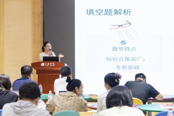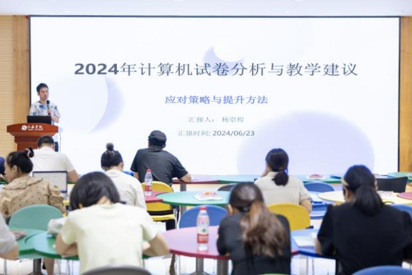 会议伊始,李菲菲、李阿念、赵善虎、郑嫣然、汪芳蕾、王晓慧、林俊辰和杨崇程八位老师分别就各自科目的2024年高考试卷进行了深入地分析。他们顺利获得对试卷的整体结构、题型分布、难易程度以及考察点的分析,分享了各自的教学经验和心得,使与会者不仅清晰地分析到今年高考试卷的特点和趋势,还学到了许多实用的教学方法和策略。同时,强调了高考试卷在注重考查学生基础知识的同时,更加注重对学生综合能力的考查。