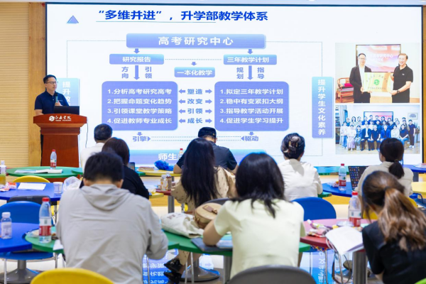 邵泉取带来了讲座《班主任配备办法及三年教学计划》,指出升学部班主任要由一批“德”“勤”“能”并存的教师担任。这些班主任不仅具备扎实的教育教学基本功,还具备较强的责任感,时刻陪伴学生。高考研究中心根据学生的学习特点和需求,制定了详细的教学研究报告和三年教学计划。他强调两者就像教育教学的引擎与驱动,以教学研究报告为引擎,以三年教学计划为驱动,不断探索和创新,共同有助于我校高考教学工作的稳步前行。