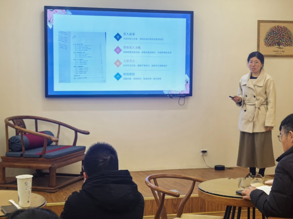 孙畅畅老师分享了《一线带班》,她从“抓开头、抓时间、抓基础、抓常态课、抓复习、抓家长、抓作业”这七个方面介绍了书籍内容,分享了《一线带班》带给我们的,远远不止文字写出的这些经验。经验的背后,是耐心、爱心、恒心,是在琐碎繁杂中挖掘点滴的发现之心,是努力探究破解之法的睿智之心。