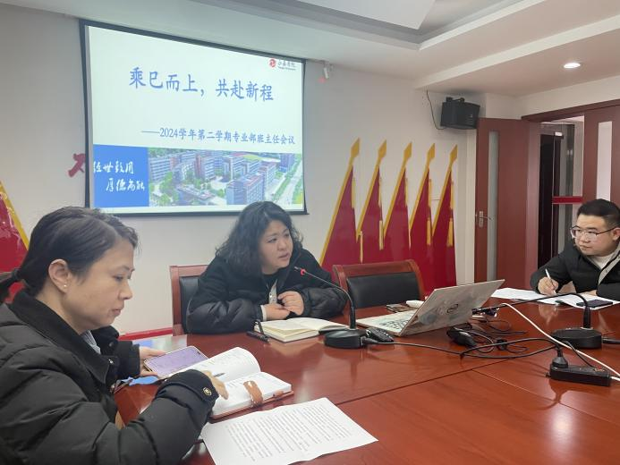 2025年2月18日下午,新学期永嘉二职专业部第一次班主任工作会议在和空间党员会议室顺利召开,共同谋划新学期学生管理工作新篇章。参加会议人员有永嘉二职副校长谢丽莉,专业部主任周芳,学部助理王惠、罗建群、廖良臣及全体专业部班主任,会议由周芳主持。会议伊始,周芳回顾了上学期班主任工作的丰硕成果,对各项工作的有效实施给予了高度评价。随后,她针对新学期班主任工作,明确提出了一系列要求:强化家长会和家访的规范性,确保班级管理和教育记录的详尽精确,并着重强调了学生钉钉请假制度的重要性。此外,她还提及了完善3+2学生行为规范与专业素养的评价体系,并倡导班主任与学生携手参与,旨在全面提升学生的综合素质。罗建群强调了学校心理工作的重要性,指出要对心理问题学生给予充分的关注与适当的干预,还详细介绍了学校对特殊学生档案及记录的存档管理要求,以确保学生管理工作的规范性和有效性。王惠就学生管理中违纪处分的相关处理办法进行了详细说明。他希望班主任们能够持续配合,共同实行学生的日常行为规范工作,努力减少违纪行为的发生,营造良好的校园氛围。廖良臣在会议上着重强调了班主任在班级管理中的关键角色。他鼓励班主任们要持续引导学生参与广场音乐会,英语配音等活动,学校将不遗余力地为学生成长和开展创造更多元化的平台,借助学校平台促进学生的全面开展。最后,谢丽莉作了总结发言。她强调,常规管理是学生管理工作的基础,要加强日常行为规范教育和课堂纪律管理,夯实学生成长根基。同时,警钟长鸣,要加强安全知识教育,实行安全隐患排查工作。此外,她还要求班主任们关注学生的心理状态,及时发现和解决心理问题,为学生的健康成长护航。最后,她勉励班主任们要不断提升自身素质,加强理论学习,注重师德修养,提高管理能力。乘巳而上,我们满怀希望与憧憬;共赴新程,我们携手并进创辉煌。本次专业部班主任工作会议,不仅为我们指明了前进的方向,更为我们给予了宝贵的经验和策略。各位班主任将以更加饱满的热情、更加务实的作风,投入到新学期的学生管理工作中,共同书写我校学生管理工作的新篇章。