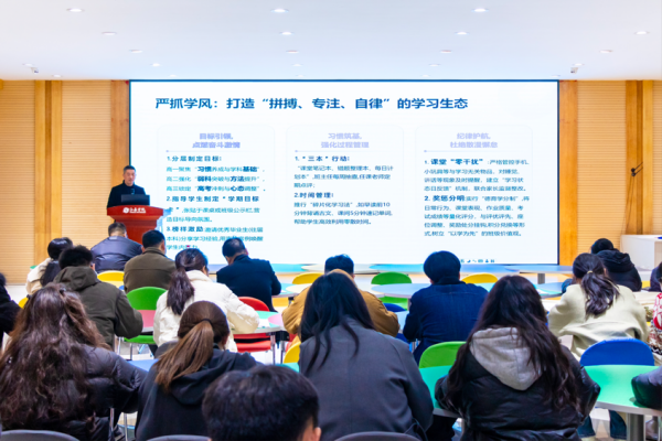 2月17日下午,永嘉二职升学部于和空间教师培训中心成功召开了新学期首次班主任会议。本次会议由升学部副主任姜涛主持,升学部主任邵泉取携全体班主任共同参与。会上,围绕“春启新程,匠心育人”这一主题,探讨如何进一步优化育人方针,旨在凝聚各方力量,为升学部的教育教学工作注入新的活力。姜涛从筑牢底线、严抓学风、深耕质量、高效自修这四个关键维度出发,分享了诸多切实可行的方法与措施,为班主任的育人工作明晰了方向。在筑牢安全底线方面,着力构建“身心双健、预防为先”的全方位防护网络。一方面,为学生的心理健康给予“暖心护航”,密切关注学生心理动态,及时疏导;另一方面,对日常安全管理做到“严丝合缝”,不放过任何一个安全隐患。对于严抓学风一事,姜涛强调,要致力于打造“拼搏、专注、自律”的优良学习生态。以目标为引领,如明灯般点燃学生的奋斗激情;凭借习惯筑基,强化学习过程管理,让学生在日积月累中养成良好学习习惯;依靠纪律保驾护航,杜绝散漫懈怠之风,营造严谨有序的学习氛围。谈及深耕质量,他提出“精准、协作、突破”的教学提升策略。精准把脉学生学习情况,做到靶向施策,因材施教;倡导协同作战,凝聚教师团队合力,共同为学生成长助力;深入召开高考研究,提前抢占先机,把握教学方向。针对早晚自习,全力激活这段“高效、专注、自主”的学习黄金时段,引导学生充分利用时间,提升学习效率。邵泉取提出“一个中心,两个基本点”的工作理念。“一个中心”是以学习为核心,一切工作围绕学习展开;“两个基本点”则是以行规和卫生为基础要点。在具体工作推进中,学生流动方案的有效实施,极大地激发了学生的学习动力,让学生们在持续的竞争环境中不断奋进。同时,升学部德育分量化和管理方案严格规范着学生的在校行为,并且各项措施都切实落实到位,保障了校园秩序的井然有序。此外,高考考纲范围的变化备受关注,教材选用务必与之配套,确保教学内容的精准性与时效性。针对学生的学习管理,邵泉取强调要做到严抓细管。班主任工作可用“繁杂细多”四字概括,任务艰巨且责任重大,需同心聚力,携手共赴育人征程,为学生的未来开展全力以赴。本次会议为永嘉二职升学部新学期工作勾勒出清晰蓝图。从姜涛围绕多维度分享的育人良策,到邵泉取提出的“一个中心,两个基本点”理念及各项务实建议,我们明确了方向,凝聚了力量。新学期,新征程,共同书写育人新篇章,助力学生在逐梦路上稳步前行,共赴辉煌!