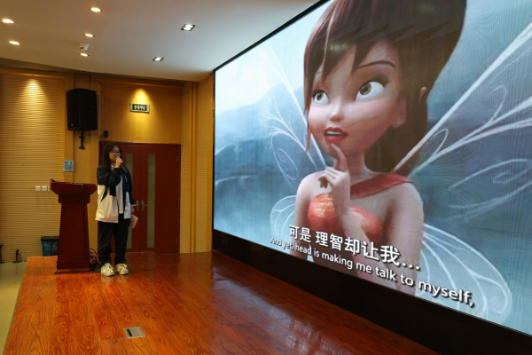决赛现场,选手们化身“声音魔法师”,为《疯狂动物城》《冰雪奇缘》等经典影视片段注入全新灵魂。从朱迪警官的坚定到艾莎女王的空灵,学生们不仅精准还原角色发音,更顺利获得语调、情感,展现了“学以致用”的英语综合能力。