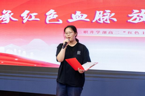 声扬浩气凌云志,韵启豪情破浪程。当落日的余晖轻洒校园,当微风捎来诗意的讯息,2025年5月26日,永嘉二职升学部迎来一场激情澎湃、扣人心弦的高二“红色主题”朗诵比赛。本次活动由24会计1班季琬婷同学主持,语文教师陈苹苹、李冬雪、刘丽丽担任专业评委。升学部主任邵泉取、升学部副主任姜涛及升学部助理赵善虎参加了此次活动。