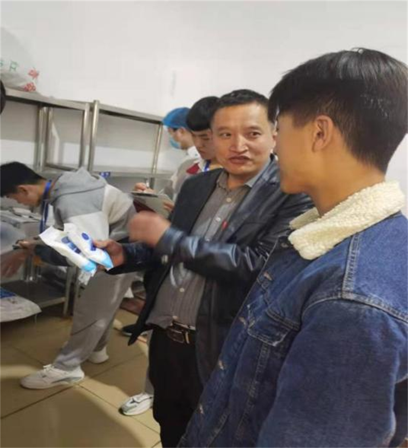 第一时间,安全员对学校食堂食材采购、验收管理制度、检查入库情况,对于食堂的大宗食材是否按照政府招商标准进行采购进行检查,对工作人员是否按照卫生检查标准对食材进行处理进行检查,对食品添加剂管理情况进行查验,是否严格执行“五专”要求和食材的处理、售卖、卫生打扫等情况现场提问,对于馒头包子面包等食品,当天制作当天售卖,对于并未售卖完的食品怎么处理,对于泔水桶怎么处理进行分析。同学们及时与餐厅负责人研讨,
