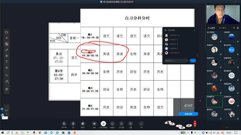 全新的线上教学模式,对老师和学生都是新挑战。班主任会议总结了线上教学问题、对下一阶段学习提出了新要求,班主任全程跟班,有效提升了学生晨读和晚自习效率。