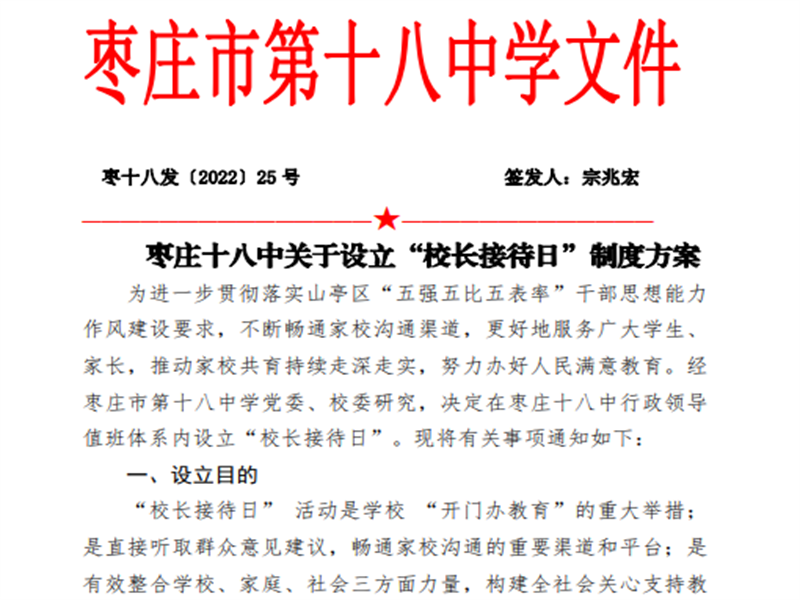 创建“校长接待日”以来,每周一、周三学校值班校级领导,在接待室内直接接待拜访家长、支持学校工作的社会各界人士,其他时间家长随时到来随时接待,持续听取家长和社会人士对学校教学管理、德育、师德师风、后動管理、学生活动等方面诸多建议。
